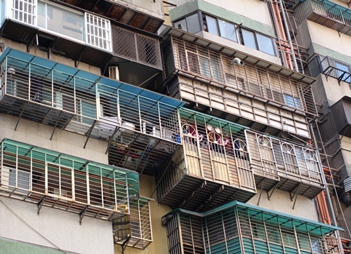 でも、路地を歩くと必ず見かける家々のベランダの鉄格子