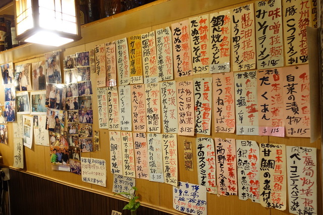 店内は少しカオスチック、所狭しと日本語のメニュー札が貼られています^^; 台湾の芸能人なのかな、店長と一緒の写真がかなり掲示されていました。寿司店となっていますが居酒屋メインでしょう。