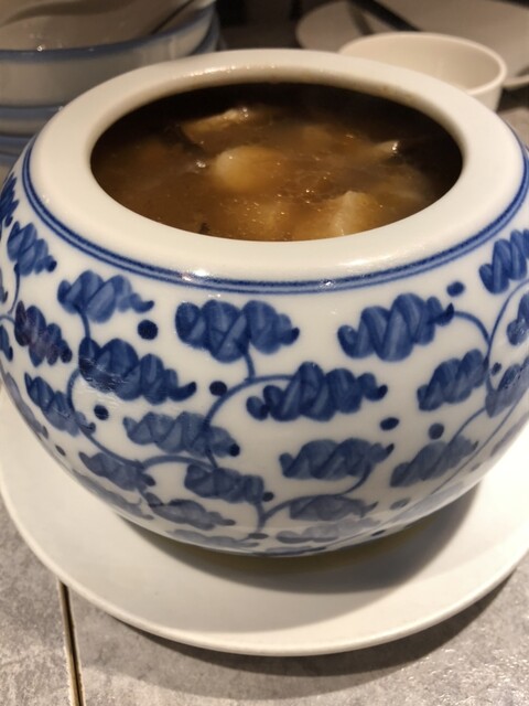 頼んだのは、東坡肉、前菜盛合せ、牡蠣の揚げ物、蟹おこわ、佛跳牆、最後にデザートです。コチラのお店で食べたかってのは、カラスミ、蟹おこわ、佛跳牆ですが、前菜盛合せは小にしたらカラスミは無かった…蟹おこわは雑誌でよく見かけたので。佛跳牆は昔美味しんぼで読んでいつか食べたかった料理です。この二つは食べれたことで満足、ただそれ以上の満足度が得られるかと言うと微妙でした。全体的に料理は美味しいけど、一般的な高級中華といった感じで、独創性などはあまり感じられるものではないです。まあ、値段もそこまで高いわけではなかったので、致し方ないかなと。