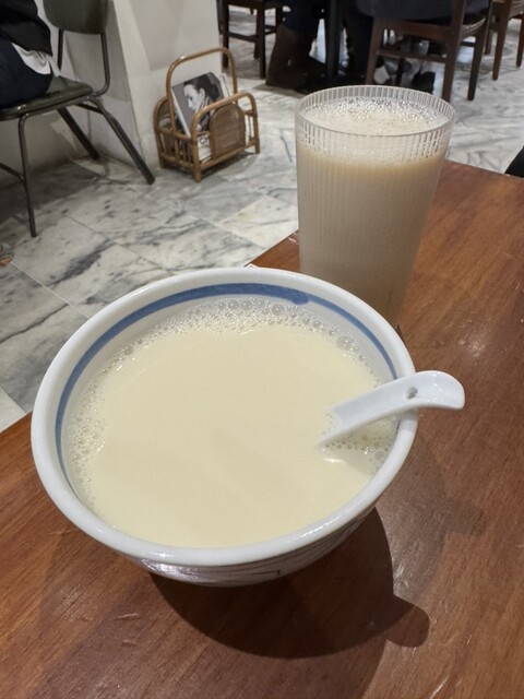 暖かい豆漿はクセもなく、大豆の風味も良くて飲みやすく美味しかったです