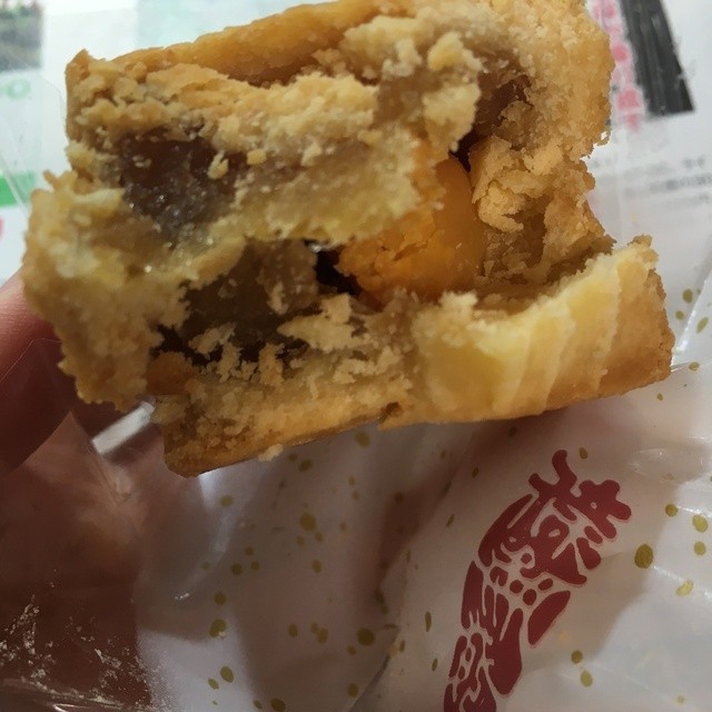 中は黄身あんでくるみもはいっており、ぎっしり詰まっていました。