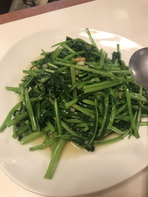 メニューを探しているとおばちゃんが豆腐豆腐と指差してくれた、こちらも名物の鶏家豆腐。ニワトリの蓋付きでの登場で、写真を撮らせてもらいました。麻婆豆腐ではないので、全く辛くなくオイスターソースベースで、一緒に頼んだ鶏のスープで炊いたシンプルな鶏飯の上にかけて食べるとご飯が無限ループの如く進みます。空芯菜の炒め物はシャキシャキで時間が経っても色鮮やかです。