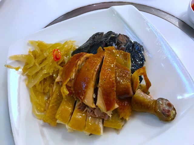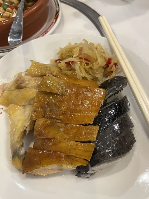 烏骨鶏他、3種の鳥による蒸し鶏を食べに、雞家莊本店へ。