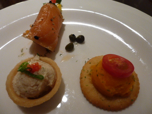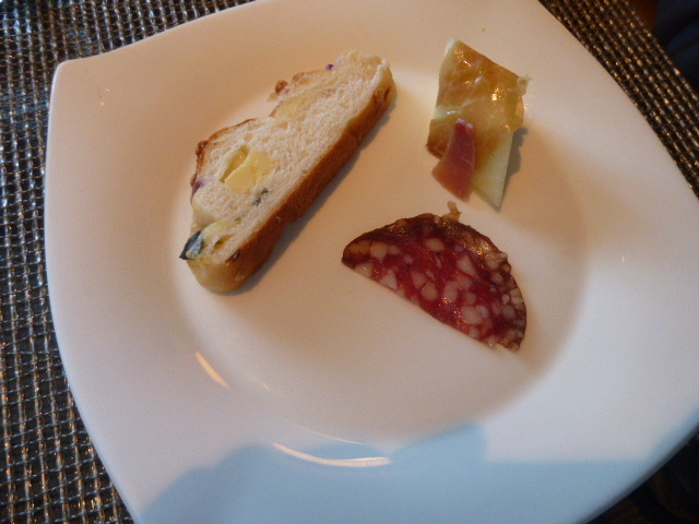 ドライフルーツ、ナッツ、クラッカー、サーモンなどいただいた