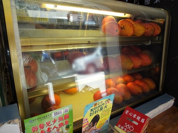 マンゴーは入口のケースに並べられている、熟マンゴーですね。
