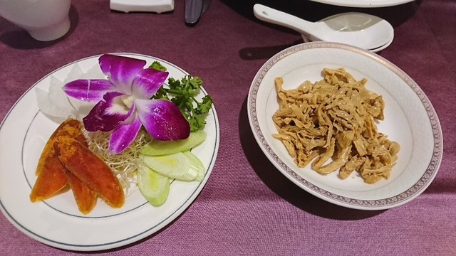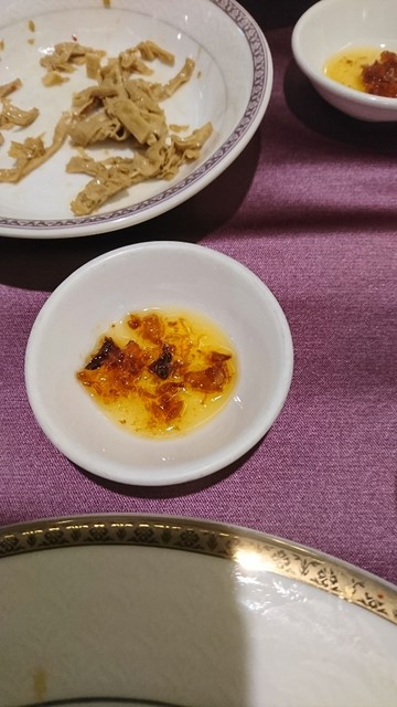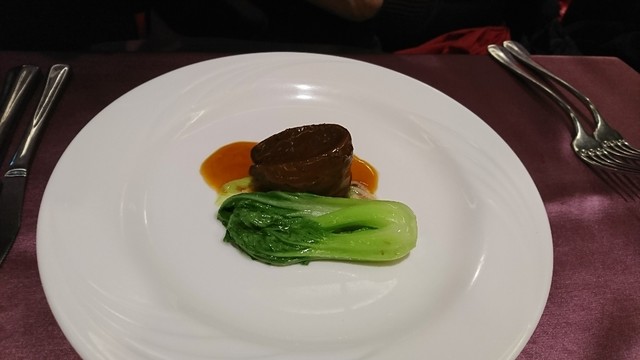 台北の中心部民生東路を中山北路二段を超えて森林北路の方向に向かって2分、道沿いの右手にある海鮮料理店。台北では人気のある海鮮料理店である。やや狭い階段を二階に上がるとテーブル席と個室があり60人は入る。料理はアラカルトもあるが、フカヒレを含むコースが基本。今回は2000元少々のフカヒレの姿煮コース。まず盛り付けの綺麗なサラダがでるが入っている蟹が本物ではなくかまぼこなのが情けない。ついでビールのつまみに小皿で台湾からすみと豆腐が出るがからすみが大根や葱と合わせるととてもうまい。フカヒレスープは大きなヒレが入り見た目が良い。スープの味はやや濃いめしょっぱめである。この後はメインとして鮑姿煮、車海老、肉料理から選択。この中では鮑が柔らかくおすすめ。〆に桜海老の炒飯、トッピングとしてXO醤がサービス。デザートはフルーツとプリン。最後ににコーヒー、紅茶、朝鮮人参茶から選択。これに台湾ビール2本で1万位なので台北では高めの価格。全体にそつのない味だか意外性はない。台北には安くてうまい店がたくさんあるので、ちょっと贅沢がしたいときの選択か。