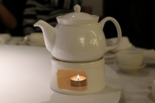 お茶は 下にローソクで温めてくれていて
