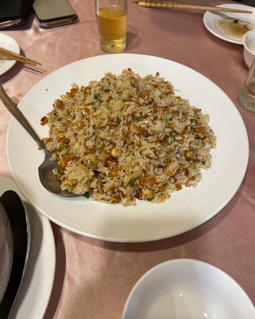 青菜炒め、蛤炒め、海老春巻き、時価の唐墨炒飯(1600元)など、香腸のようなものは、マグロソーセージの香腸風でした。