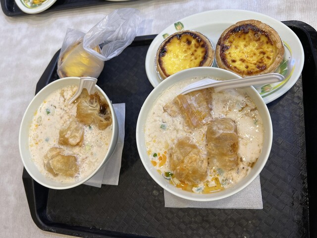 今回は3人旅行で、私と友人は鹹豆漿35元とエッグタルト35元を。