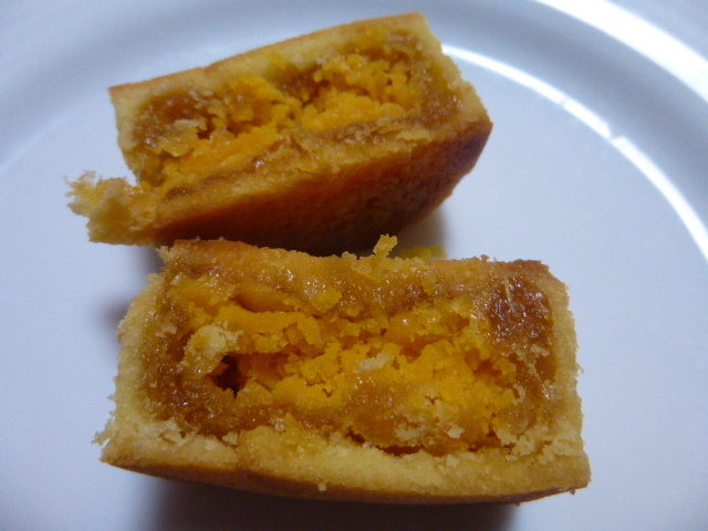 良心的な材料を吟味した、香りの良い生地を割ると、フルーティな餡がお出まし。冬瓜と鳳梨のバランスが良いですね。 良い鳳梨酥は、生地を齧った瞬間に判ります。此処のものは、こんがり焼けた粉の良い風味に、バターの香りがふわり。 クランベリー、苺、龍眼等々、パイナップル以外のジャムも、個性豊かで此処ならではの楽しみです。 |