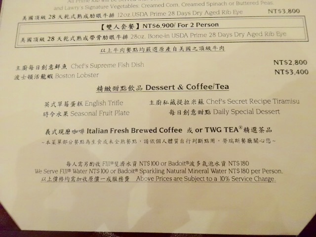 Lawry's The Prime Rib Taipei(勞瑞斯牛肋排餐廳)