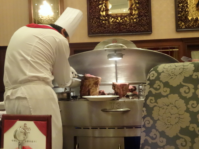 メインのお肉はワゴンがテーブル前にガラガラと運ばれて来て