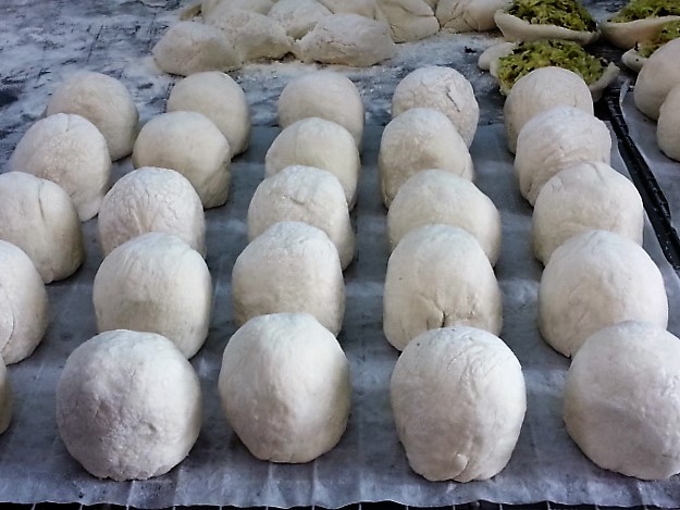 大きな野菜まんを、お客さんは10個も20個も