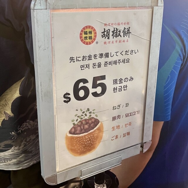 MRT松山駅すぐのところにある饒河街観光夜市。その入口付近にある胡椒餅の名店。いつも行列が絶えないのですが数人待ちだったので初めて購入。