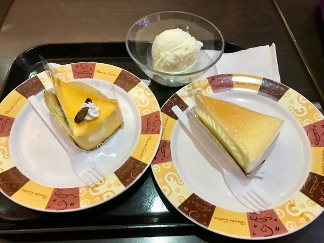 美味しそうに見えたマンゴーケーキ。ラストワンのチーズケーキ。カプチーノ。アイスクリーム。