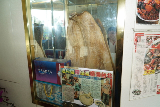 お店の前には大きなフカヒレが展示してある。まあこういうディスプレイは台湾ではかなり一般的だ。