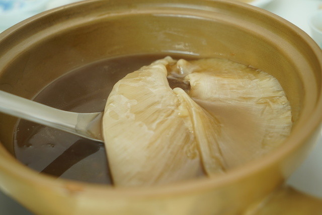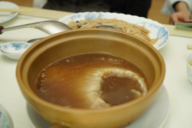食べてみると・・・フカヒレなのだが味が全く染みていない。料理の仕方はよく分からないが今乾燥フカヒレを戻してすぐ調理した、という感じだった。