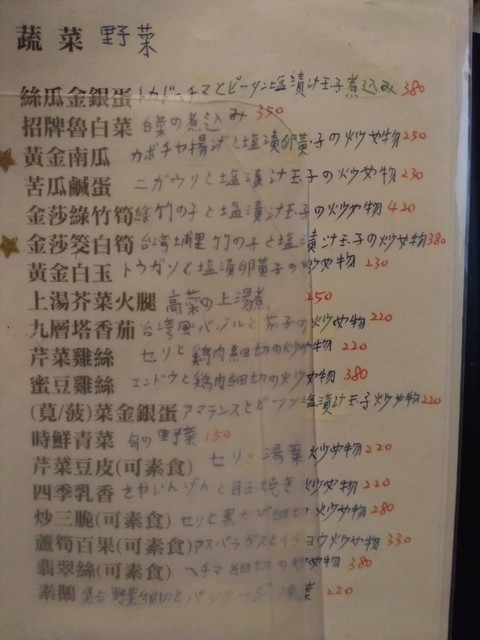 ・・・塩漬け玉子はピータンのことです。野菜たっぷりで、汁まで飲み干しました。