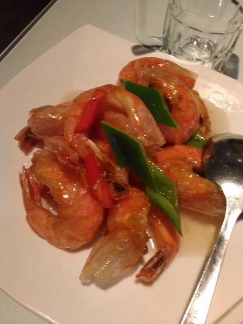 ・・・変わった組みあわせだが、甘辛ダレがかかった素揚げの海老と酸味のあるピンクグレープフルーツが合う!