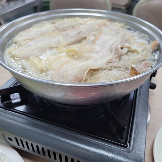 かなりおあずけをくらい、ようやく店員さんの許可を得ていただいた鍋の味は、出汁の美味しさに漬け白菜と豚肉の絶妙な味わいのハーモニー、そして初めてのソースのインパクトも効果大、得も言われぬ味わいでございました(*>∇<)ノ