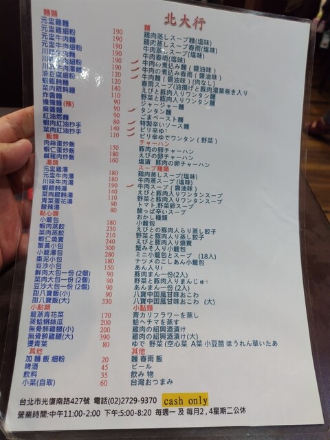 炸醤麺(90元≒450円), 肉絲蛋炒飯(150元≒750円), 小籠包(180元≒900円)