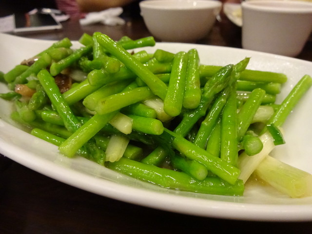 • 明月湯包 - アスパラと椎茸の炒めもの
