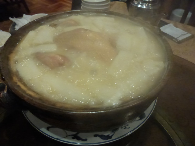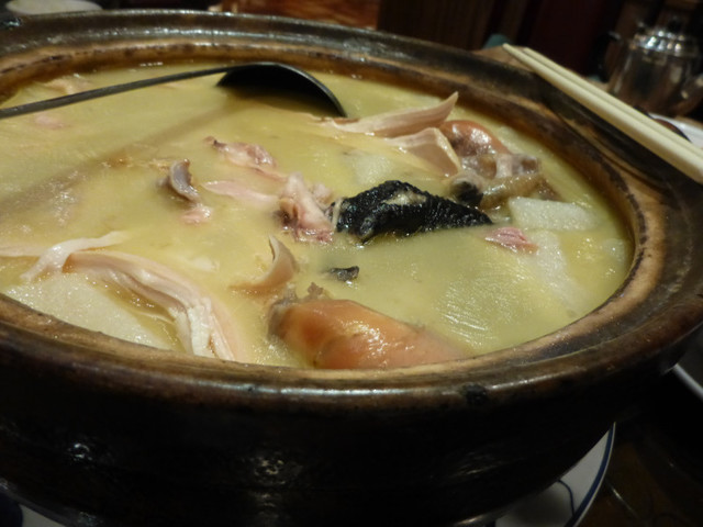鶏スープはキヌガサダケ入り土鍋鶏スープ選択3150元(2017年現在1万1650円