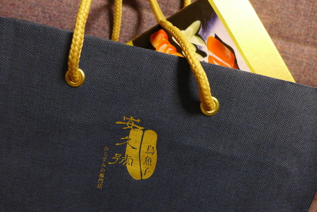 台湾ならではの良質安価なからすみを、大切な方への土産にも相応しい綺麗な箱入りで。