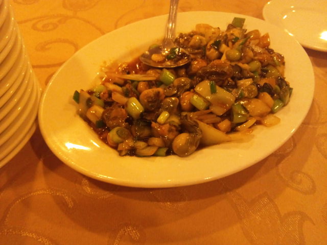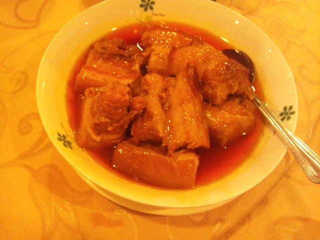 日本人の口に合う、台湾の家庭料理ということで行ってみました。レストランは地下ですが、1階はお弁当屋さんになっていて、昼時は近くのサラリーマンなどで賑わっているらしいですよ。コースで頼んでしまったがため、かなりの量となりました。千切り干し大根のオムレツ⇒豚肉の角煮⇒かきとモロミの炒め(これ以降食べることに専念したため写真無しです)⇒えびのそぼろいためレタス包み⇒魚の甘醋あんかけ⇒豆腐の醤油煮込み⇒いか団子⇒野菜炒め⇒チャーハン⇒ハマグリのスープ⇒旬のフルーツ、終了。ということで、朝から4食+スイーツ2食を平らげている我々にとって、これは試練以外の何物でもありませんでしたが、味の方は上々でしたよ。