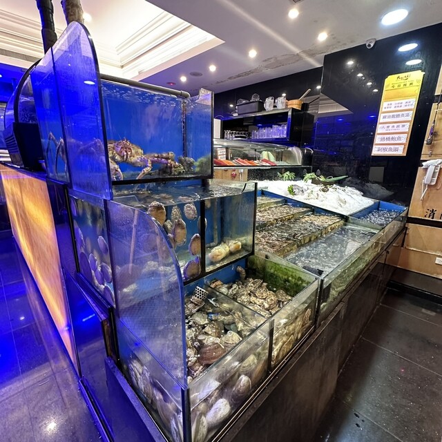 大陸の方でもよくある、入り口に水槽がいっぱいあっ...