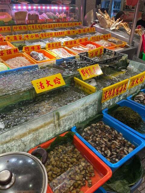 鵝肉城活海鮮の店頭で「蛤はあるか?」確認してから席につきました。