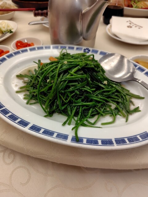 広東料理なので各種点心が豊富でそれぞれ美味しく、それ以外にも揚げ豆腐や空心菜っぽい野菜も美味しく、最後のタピオカと芋類入りのデザートも最高だった。