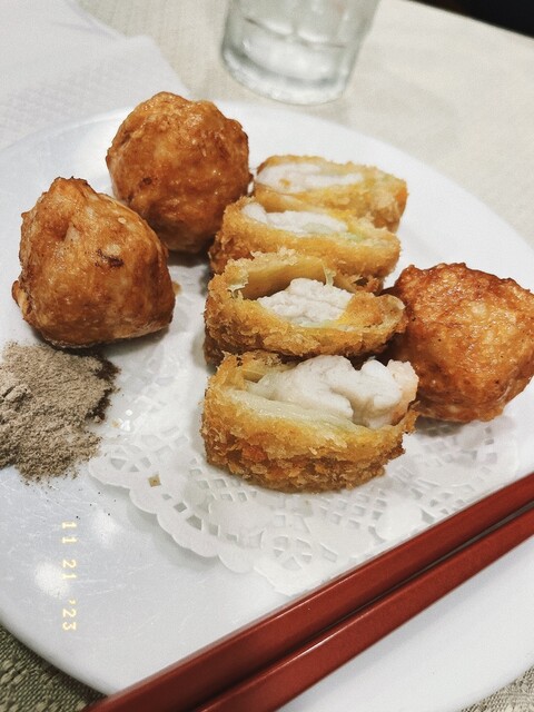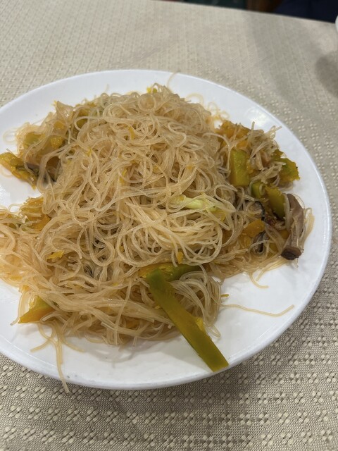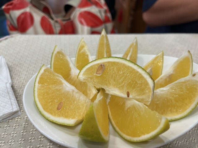 予約しないと入れないと聞いて事前にホテル経由お願いした。日本語話せないけど、日本語メニューはあった。なのでまたお世話になるGoogle翻訳。煮魚が美味しいと聞いたけど時価だから高かった。6000円とかかな。伊勢海老は煮込みじゃないけど1万は超えていた。カードは使えるけど、とりあえずやめて他を頼んだ。ただ日本の感覚と違いカキフライはちっちゃ。パン粉で揚げてるのじゃない。イカ団子がめちゃ美味しいと書いてあり頼んでみたけど普通に美味しい。角煮は八角ききまくりで脂が見た目以上にありギブ。主人は自分が見つけたお店だからか?全部美味しいと言ってたけど全般薄味でビーフンは味しなかったよーな。蛯名は子供も喜んで食べてたけどお腹いっぱいにはならず。最後のフルーツライムみたいだけど、実はオレンジ。結構美味しくてこれが良かった。店員さんも感じ良いしロコ人で席は埋まってた。お腹空いてるから2軒目どこにしよーと考えながらも遅い時間だから翌日のホテル朝食たくさん食べようと思った。