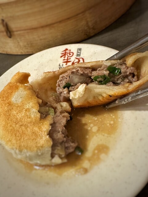 酸辣湯は酸味も辛味も控えめながら、具だくさん。かなり満足度が高い。牛肉餡餅は外はカリッと香ばしく、中には甘辛の牛肉餡がぎっしり。割ると肉汁が溢れ出し、小籠包にも負けないインパクトだ。
