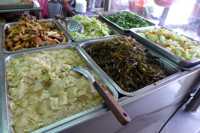 切り昆布の煮ものとか、筍、豆干、高麗菜(キャベツ)煮、等々。