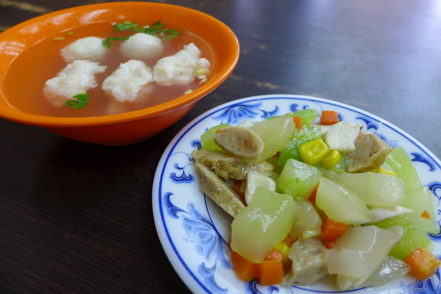 蝦仁丸はふわり蝦の良い香り、旗魚丸も柔らかく、どちらも肉団子の貢丸(コンワン)とは一味違ってあっさり。