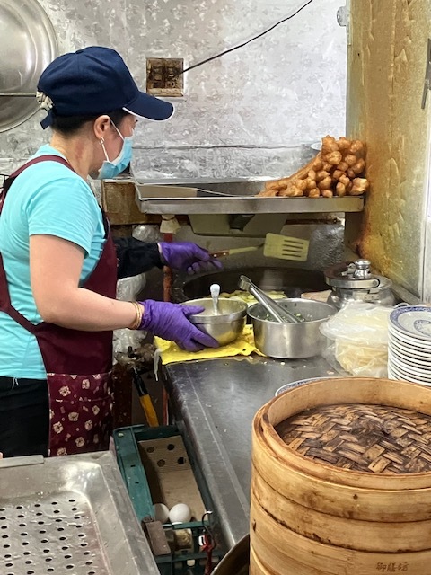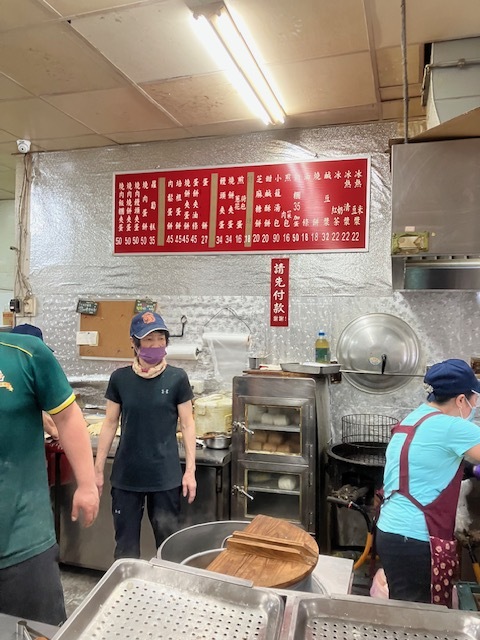 注文はお店の入り口のカウンターで行います。日本語、英語とも通じず困っていたら、列にいた腕に入れ墨がいっぱいのお兄さんが中国語に訳してくれました。お店は庶民の朝食の店という感じで地元民が家族で来られていますが、日本人も、外国人もいました。