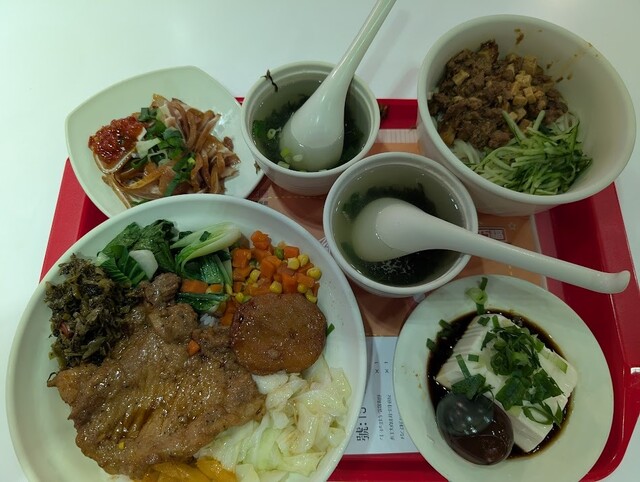 出発前に最後に立ち寄ったフードコート、広い部分にある店舗は何故かバーガーキング・韓国料理・パン屋等、折角なので台湾料理ということで、こちらのお店で排骨飯を注文。率直な感想は機内食のような感じ。牛肉湯麺...