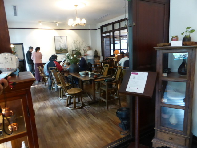 入口で椅子がいいか、畳がいいかと訊かれ、椅子とリクエストします。昼食後ですから、到着した時間が12時過ぎ。入口にある椅子席のホールは満席で、ほとんどの人がランチを食べてますね。中国茶専門店なんですが、この時間帯は完全にカフェでした。
