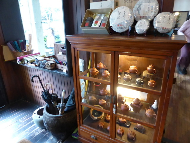 しばらく待ってから、テーブル席に案内され。メニューを見ると茶葉は1種類でおよそ350元(行った時は、およそ1400円)くらいで、凍頂烏龍茶から1種類、普洱茶から1種類を購入。茶菓子には、かりんとう、と、おもちを買います。準備に時間かかかりそうなので、畳の部屋を見に行ったり、ランチの様子を見たり。