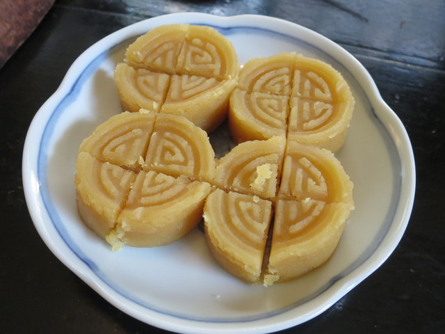 緑豆糕は、落雁ほどかたくないし、ぱさぱさしてません。