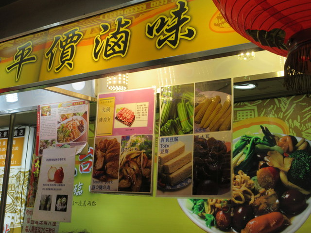 滷味(卤味)ルーウェイとは、ようするに煮汁が漢方系の台湾おでんのこと、であります。最初とまどったのは、香港など「滷味」(または鹵水)ロウメイとは、潮州料理における、醤油ベースの香辛料入りのタレに各種の肉や内臓、魚介類(イカ)などを漬け込んだものの意味でして、たいていは常温や冷たくしていただきます。中国の食文化の奥深さと地域差の大きさを物語るものと申せましょう。