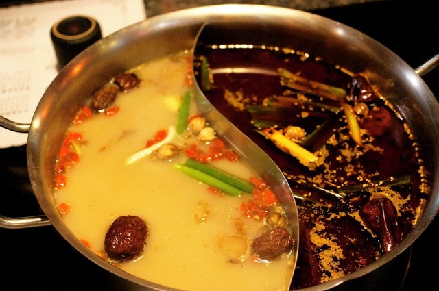 辛いマーラー鍋と、まろやかなよ白湯鍋(養生白味と云うみたいです)、2種を堪能できるので、辛すぎず、遂、食べ過ぎてしまいそうです。