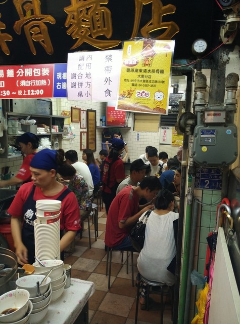 "清水排骨麵店"さん、排骨麵が有名で活気のあるストリートですが、ひときわ元気なお店です(^^)