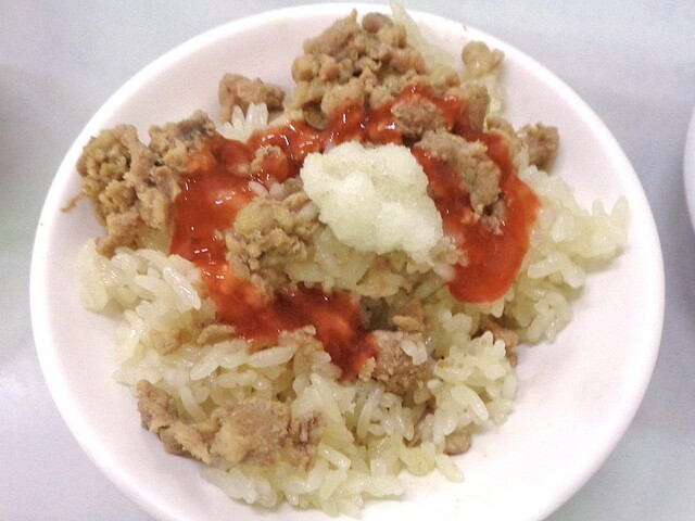 「米糕」は,小振りの茶碗に ごく薄味の おこわ を盛り,汁ダクの豚肉そぼろ をトッピングしたものです.軽目のボリュームでした.