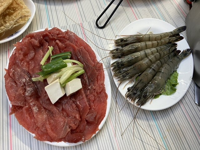 2️⃣鍋の具材も自分で選ぶのですが、オーダーの仕方はやや圧が強いです。具材の写真を指差し、「台湾産豚、これアメリカ産…これ要るか?これは?これは?白菜等野菜はサービス…〆は麺、春雨、ご飯?」と店員がオーダー表をチェックしていきます。特に新鮮なイカとエビ、揚げ豆皮(揚げ湯葉)は必ず頼んだほうがいいです。