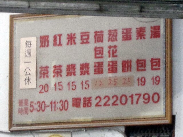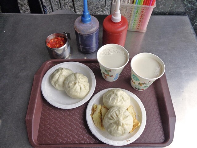 メニューには,湯包,素包(具無しまんじゅう),蛋餅(卵のクレープ巻き),葱花蛋(ネギパン),荷包蛋(目玉焼き),豆漿(豆乳),紅茶類等があります.