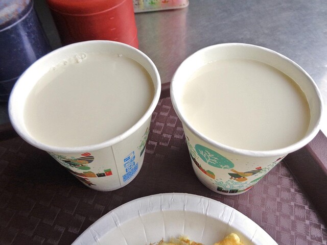 「豆漿」等の飲み物は,客が自分でタンクから紙コップに注ぐシステムです.テイクアウト用に,カップにシールをする機械も置かれていました.