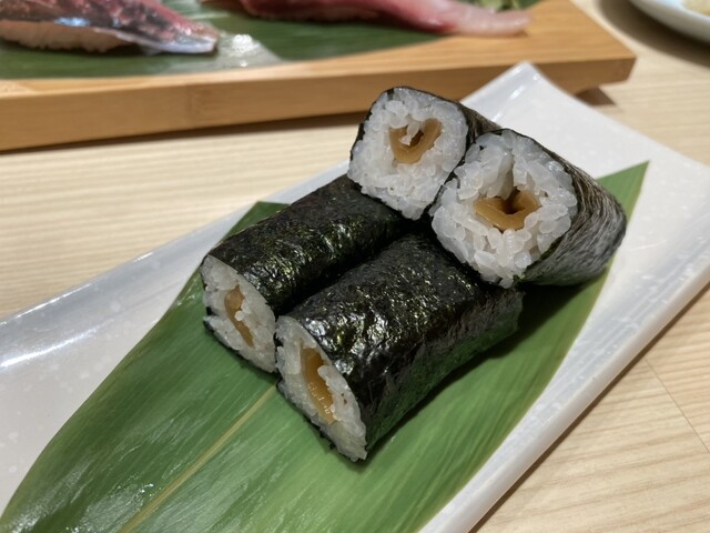 最近、鮪は細巻でいただくのが定番なんで赤身とトロを注文。白身は真鯛とぶり、光物はコハダに鯵としました。