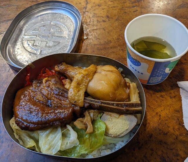 柔らかな猪排と雞脚がのる豪華版!台東の皇帝米は粒立ち良く、弾力、甘みともに申し分なし。